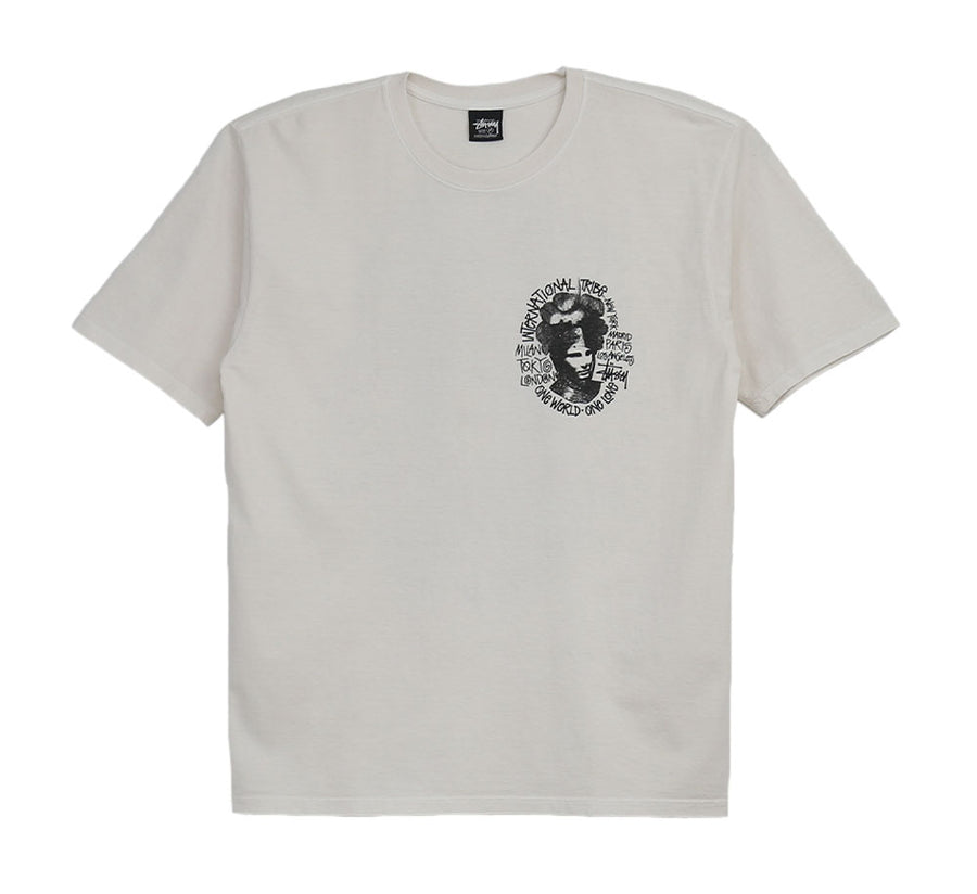 Oversized pigment dyed tee in midweight 6.5oz cotton jersey. Features screenprinted graphics.