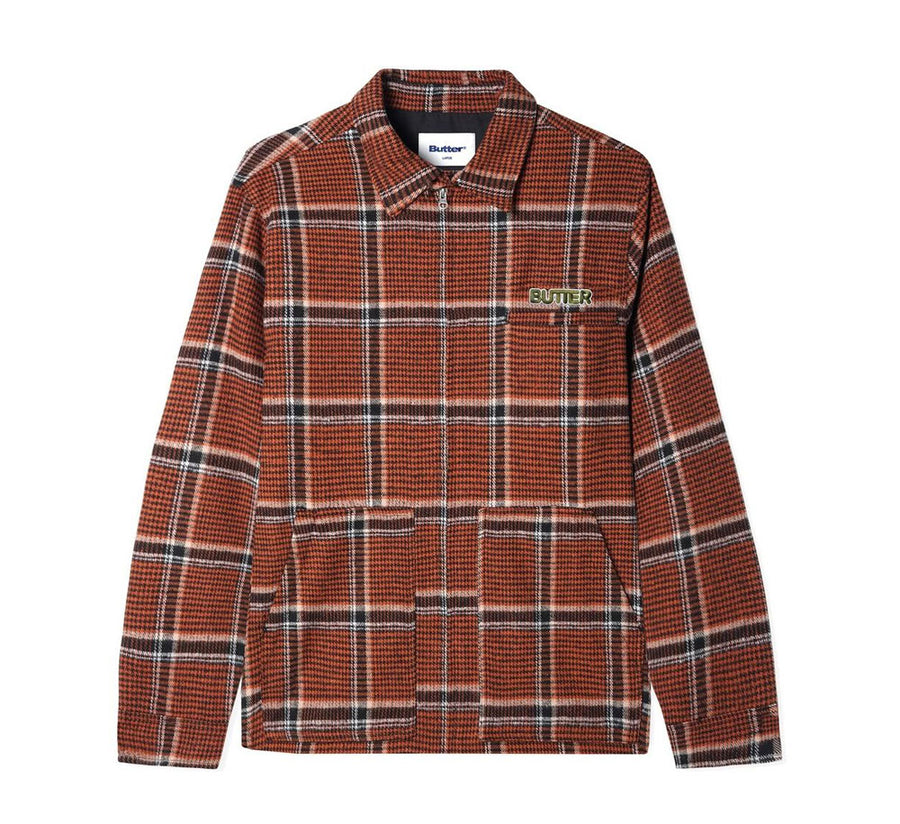 - 60% Polyester / 40% Cotton heavy weight flannel plaid zip through overshirt