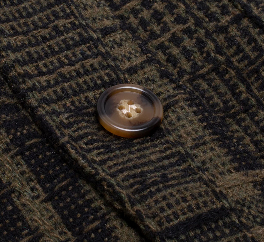 Large 4-Hole Horn Buttons at Center Front.