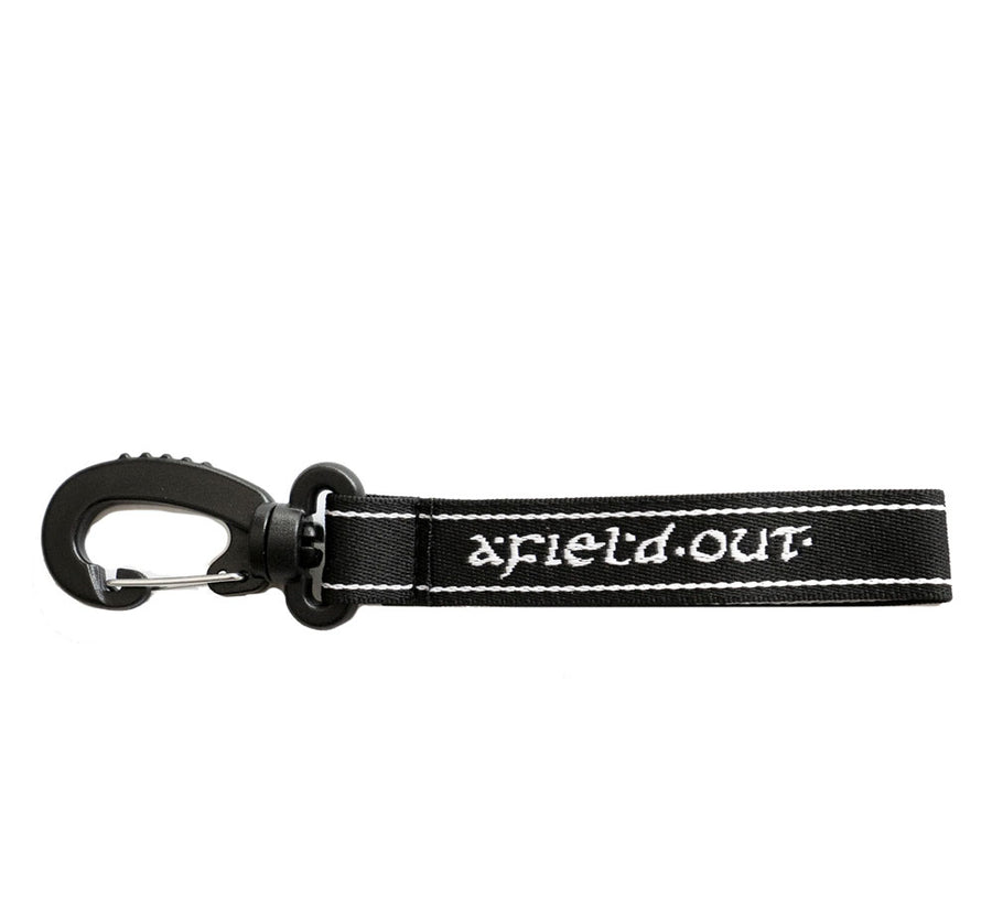 A lightweight keychain featuring jacquard webbing and lobster claw clasp.